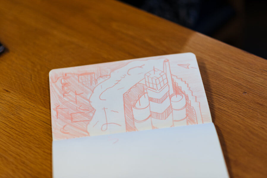 I got to FabCafe about an hour before the event so I could meet Kevin Foster, a Californian living in Gunma getting into watercolor landscapes, great guy. We then met Alvaro Arregui and headed upstairs to the 10F of Loftwork, in the same building as FabCafe. The views were amazing as you see. I found this nice spot near the window, and the event began slowly with people drawing portraits of the people in front of them. The shy and the talkative all ended up engaging in a friendly conversation. The sunset views from there were so amazing I couldn’t even resist shooting my own time-lapse with an iPhone.